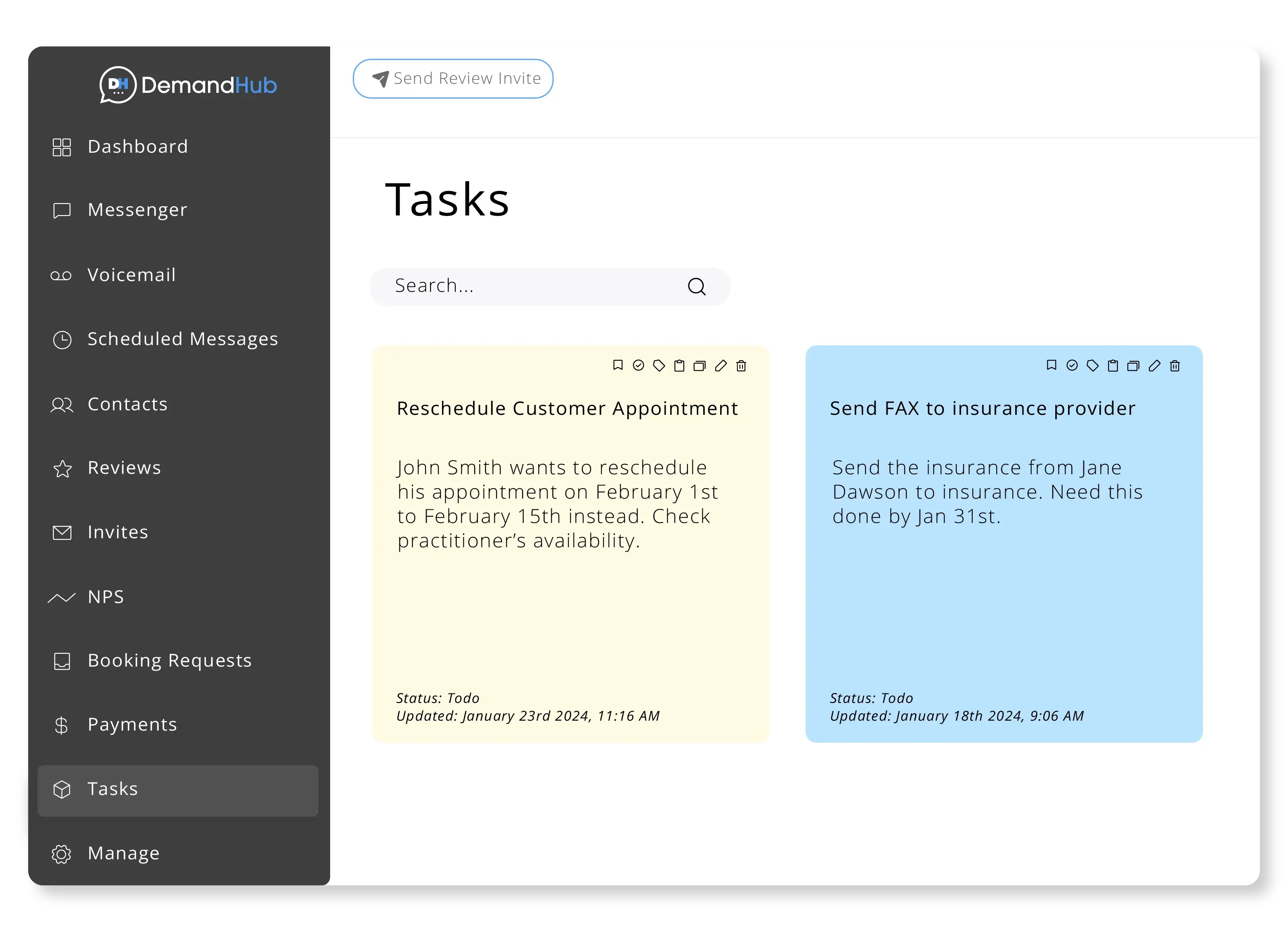 DemandHub helps grow your online reputation. It’s easier than ever to collect those shining 5-star reviews, with automated requests for feedback sent via text.